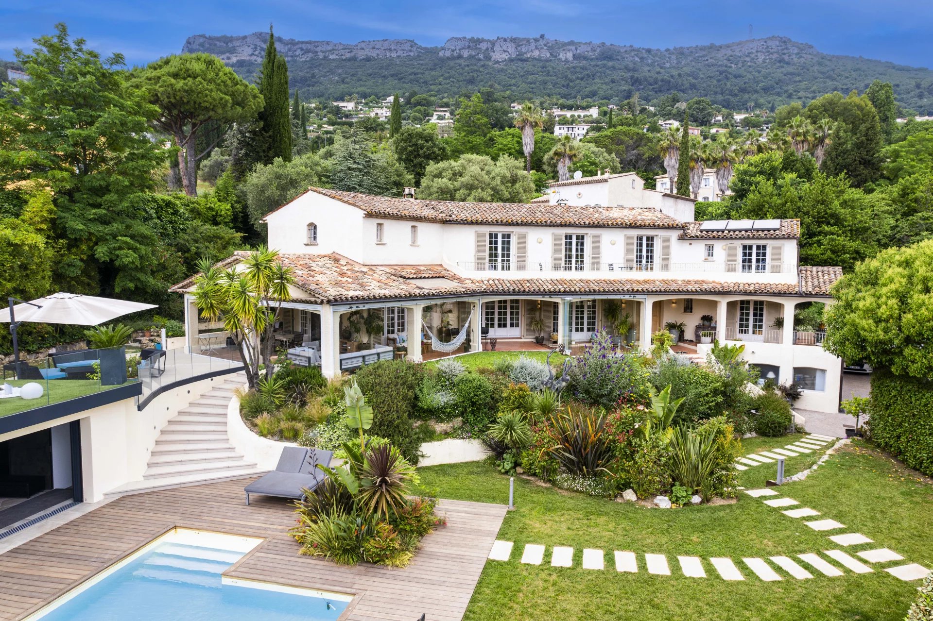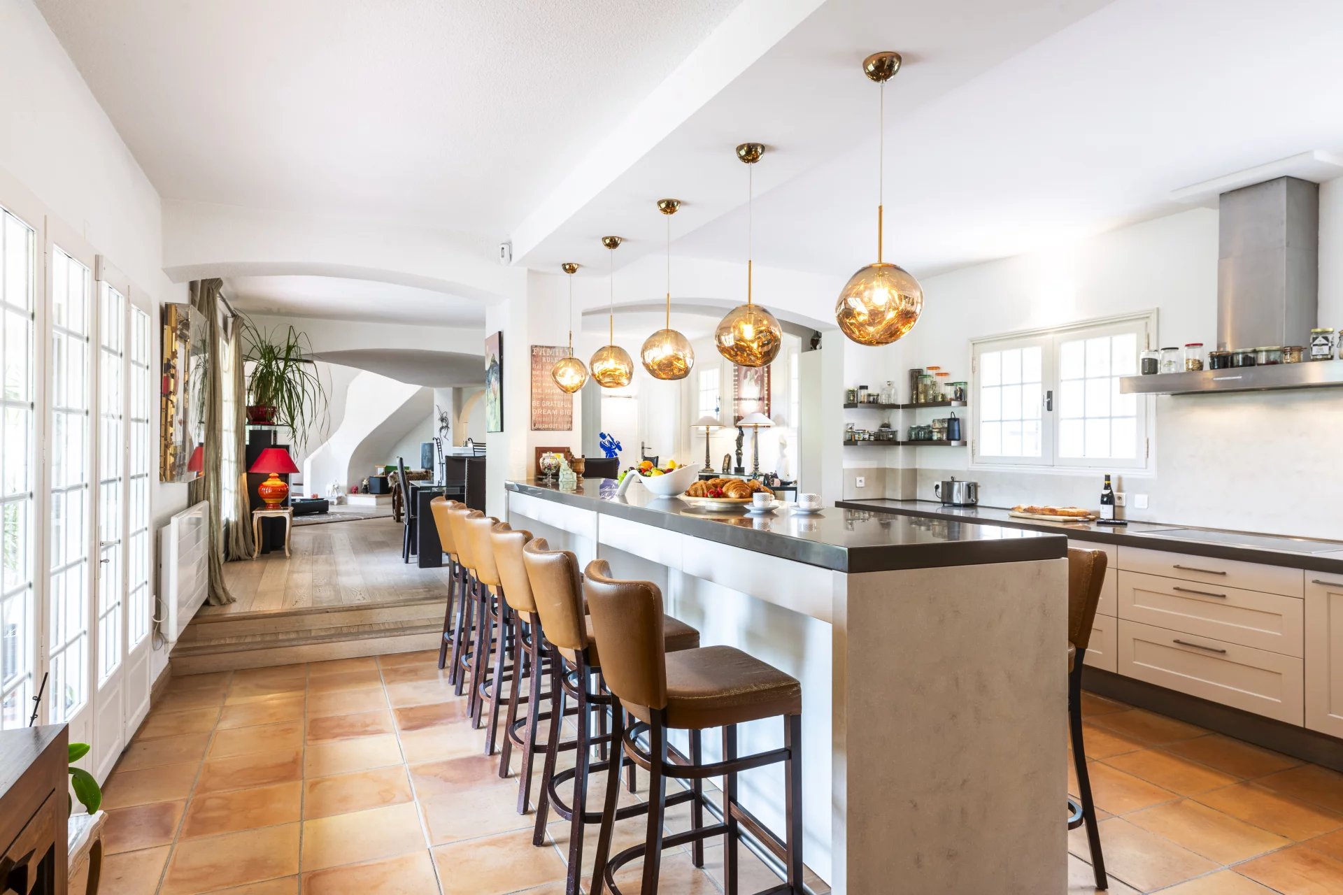 The organic garden includes a superb free-form pool, a pool house with sliding glass panels, fully equipped with a summer kitchen, an indoor jacuzzi, a fitness room, and a bathroom. An independent studio with private access adds up to a total of 5 bedrooms. You will also find a pétanque court and numerous storage spaces.