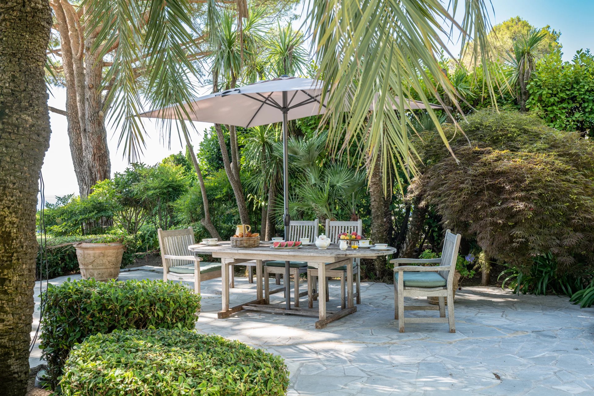 Extending over one hectare of grounds carefully tended and landscaped by the famous Jean Mus with over 40 olive trees, this haven of peace promises absolute calm and total privacy.