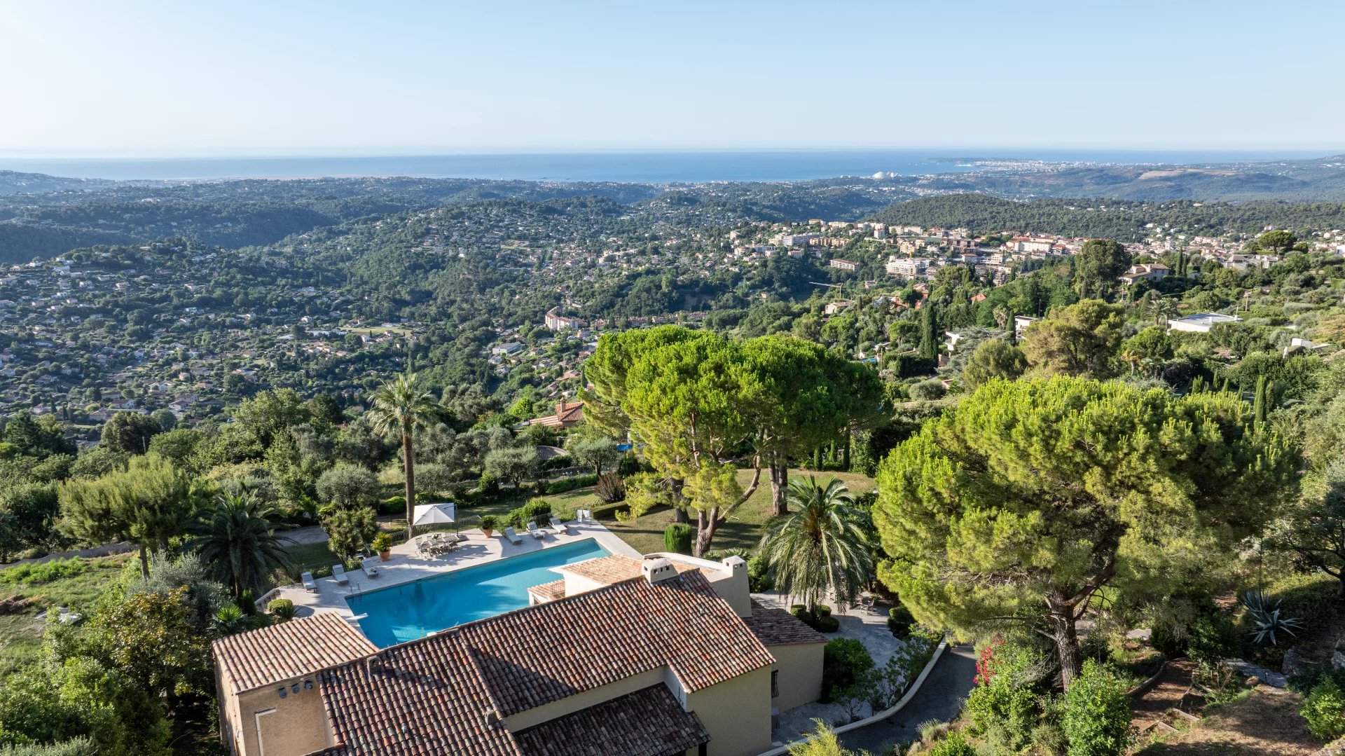 Nestled in the heights of Vence, this exceptional property offers breathtaking panoramic sea views.