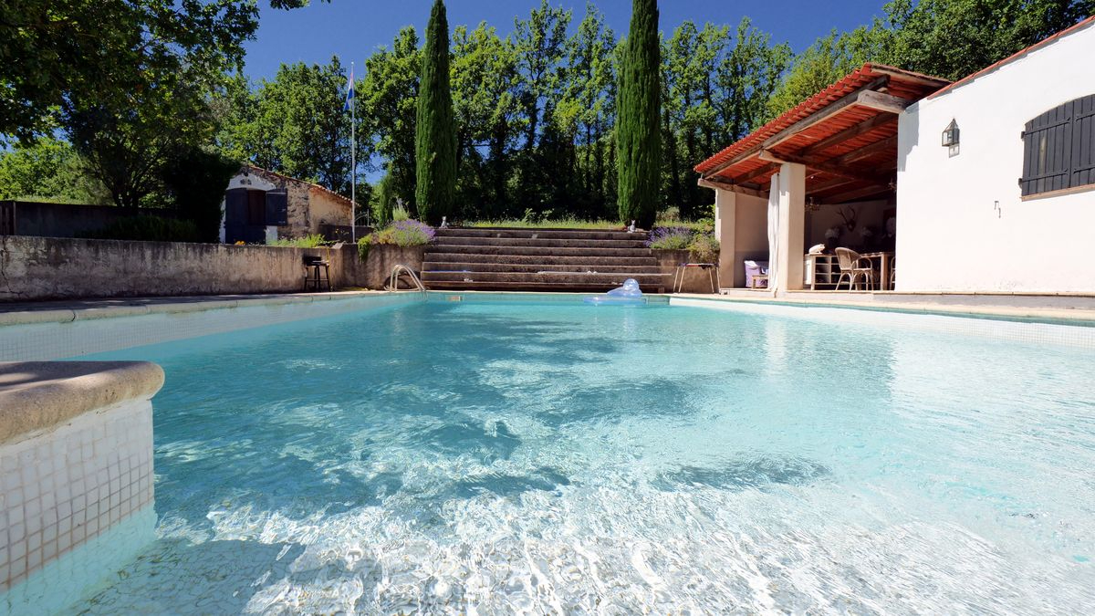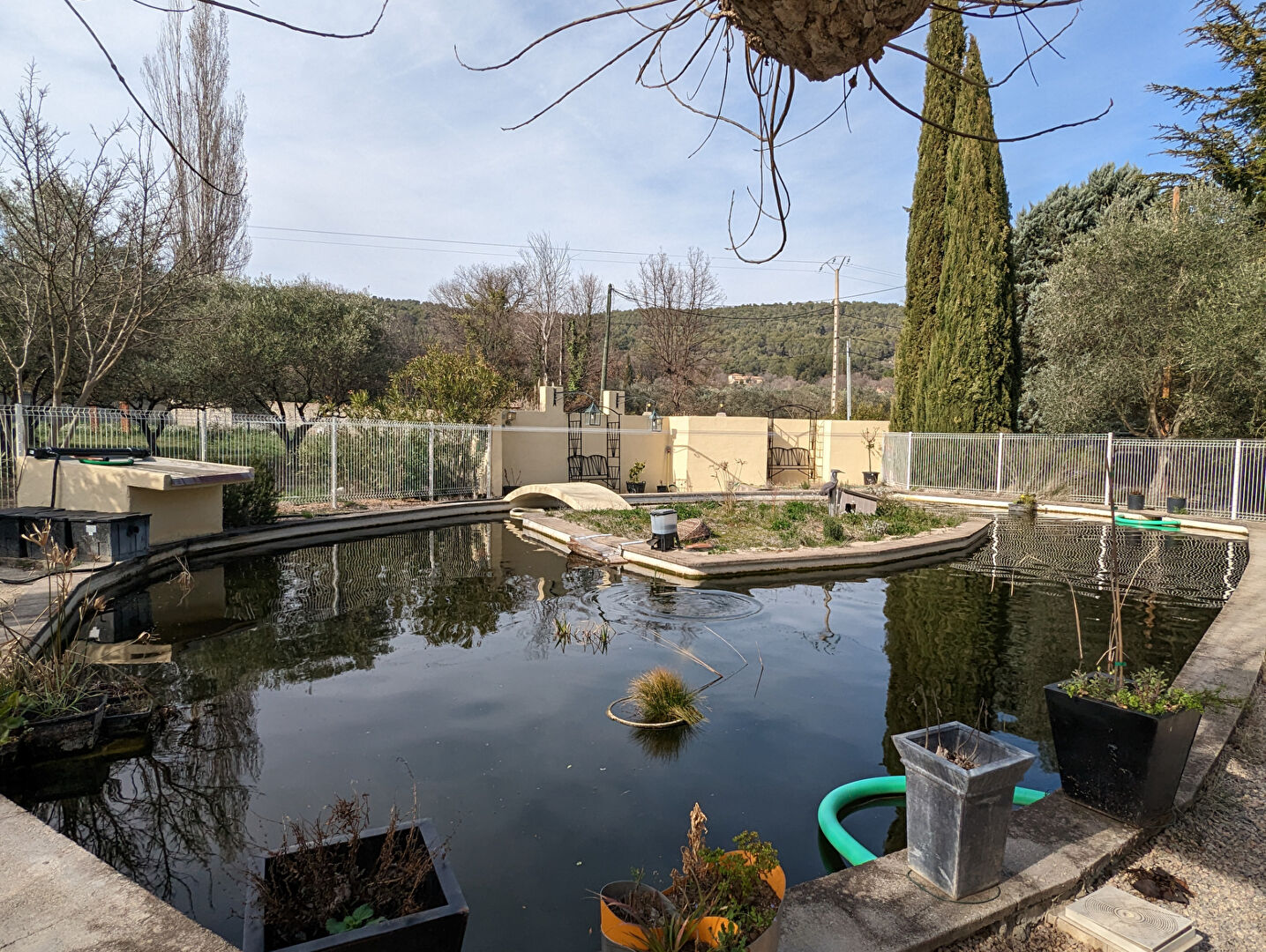 4.2 hectares of land planted with trees (209 olive trees) in a natural and agricultural zone, a large shaded terrace, a beautiful 12 x 6 m heated salt water swimming pool, a 52 m2 pool house converted into a guest house, a petanque court, a shed, a removable shelter to store maintenance equipment and a large fish pond (possibility of converting it into a second pool). The whole property is supplied with spring water.
