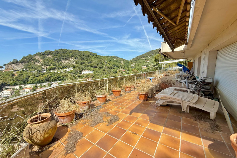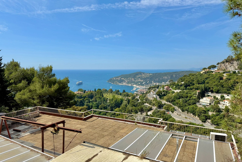 To renovate – Ideally situated on the heights of Villefranche-sur-Mer, along the middle corniche, this contemporary villa built in 1986 offers a privileged setting on a private cul-de-sac serving only two properties.