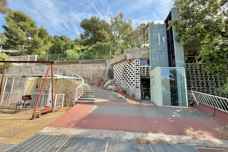 Facing due west, it enjoys a peaceful environment and unobstructed views, while providing ample parking, including the possibility to park several vehicles on the roof of the house, directly accessible from the road via an elevator connecting the different levels.