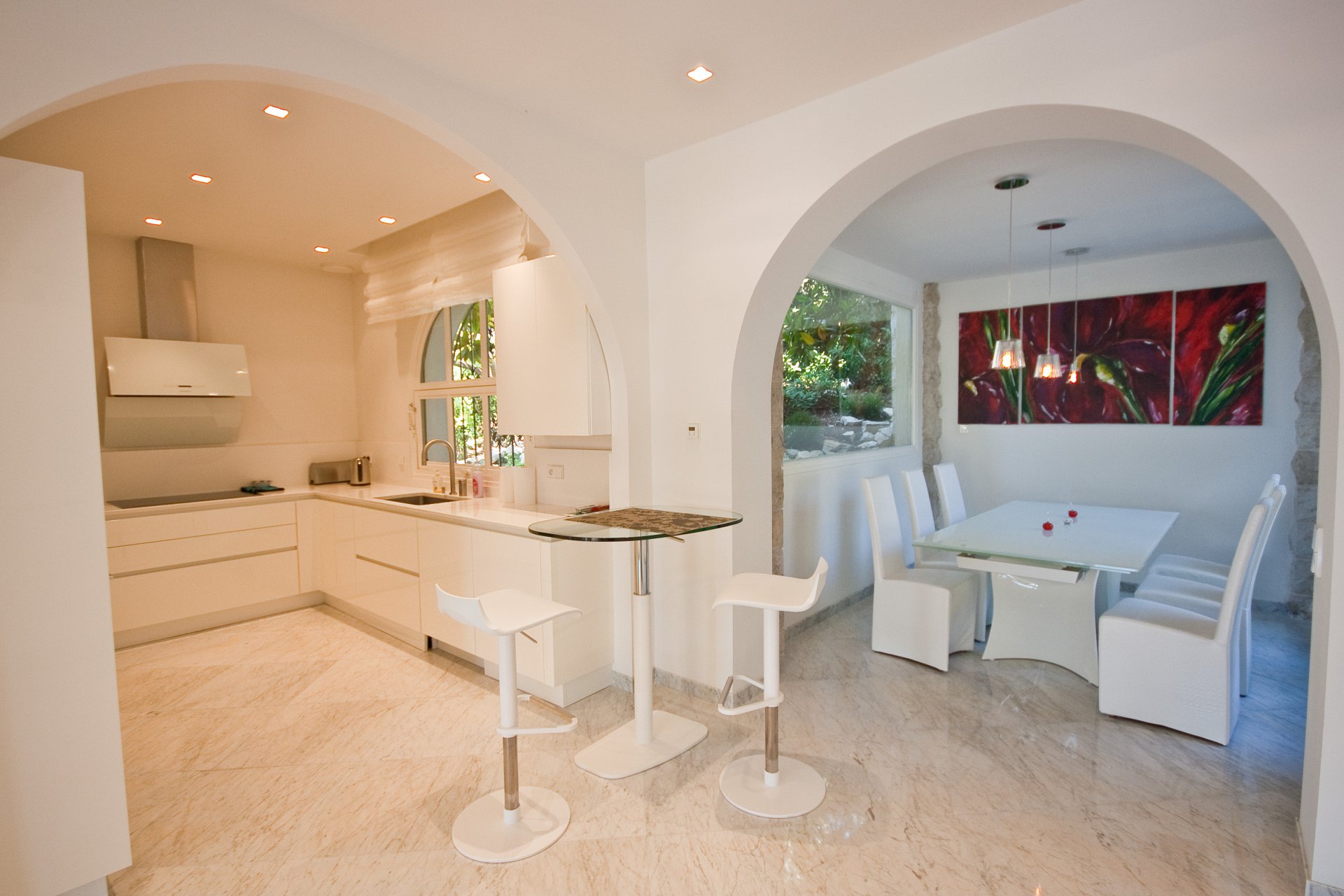 Elegant and spacious accommodation of 400 m2, large terraces of 105 m2 and utilities spaces for 65 m2. The main level offers a large entrance lounge, vast bright living room open onto terrace enjoying a huge picture window with stunning views out over the Mediterranean, sleek fully equipped modern kitchen fitted with made to measure units with a lovely garden view dining area.