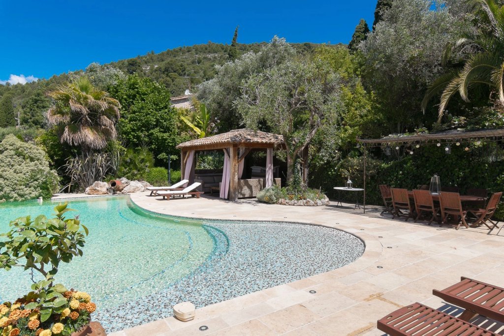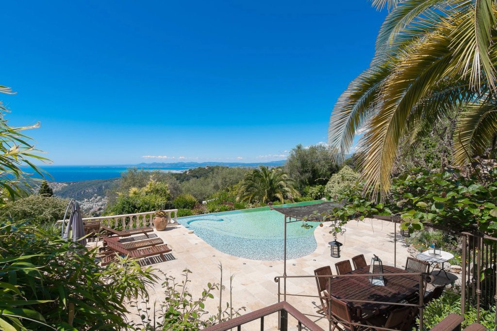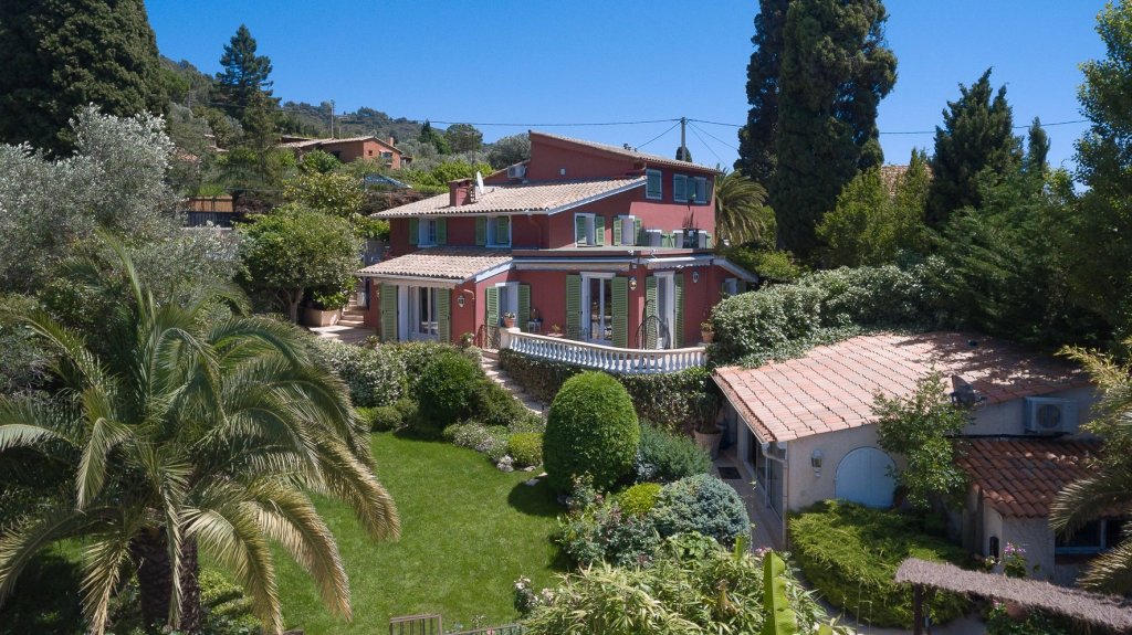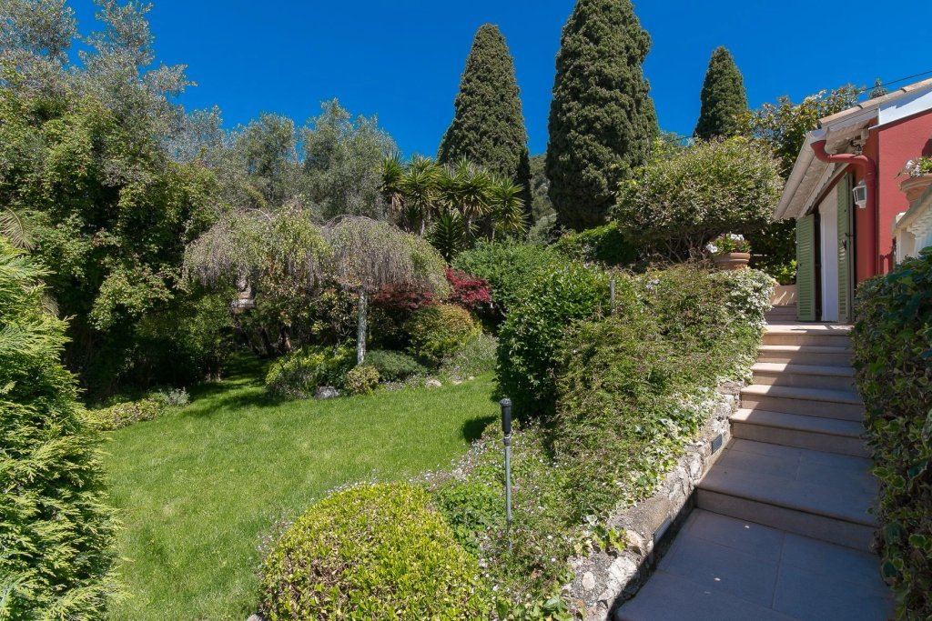On the heights of Villefranche sur Mer enjoying a panoramic view onto the hills and the sea, very charming property in Villefranche-sur-mer built in the 50’s including, in the main house: entrance hall, double living room, dining room, equipped kitchen and large bedroom with bathroom ensuite on the ground floor; 4 bedrooms, 2 shower rooms and separate toilet on the 1st floor; a fifth bedroom with bathroom and dressing room ensuite on the second and top floor.