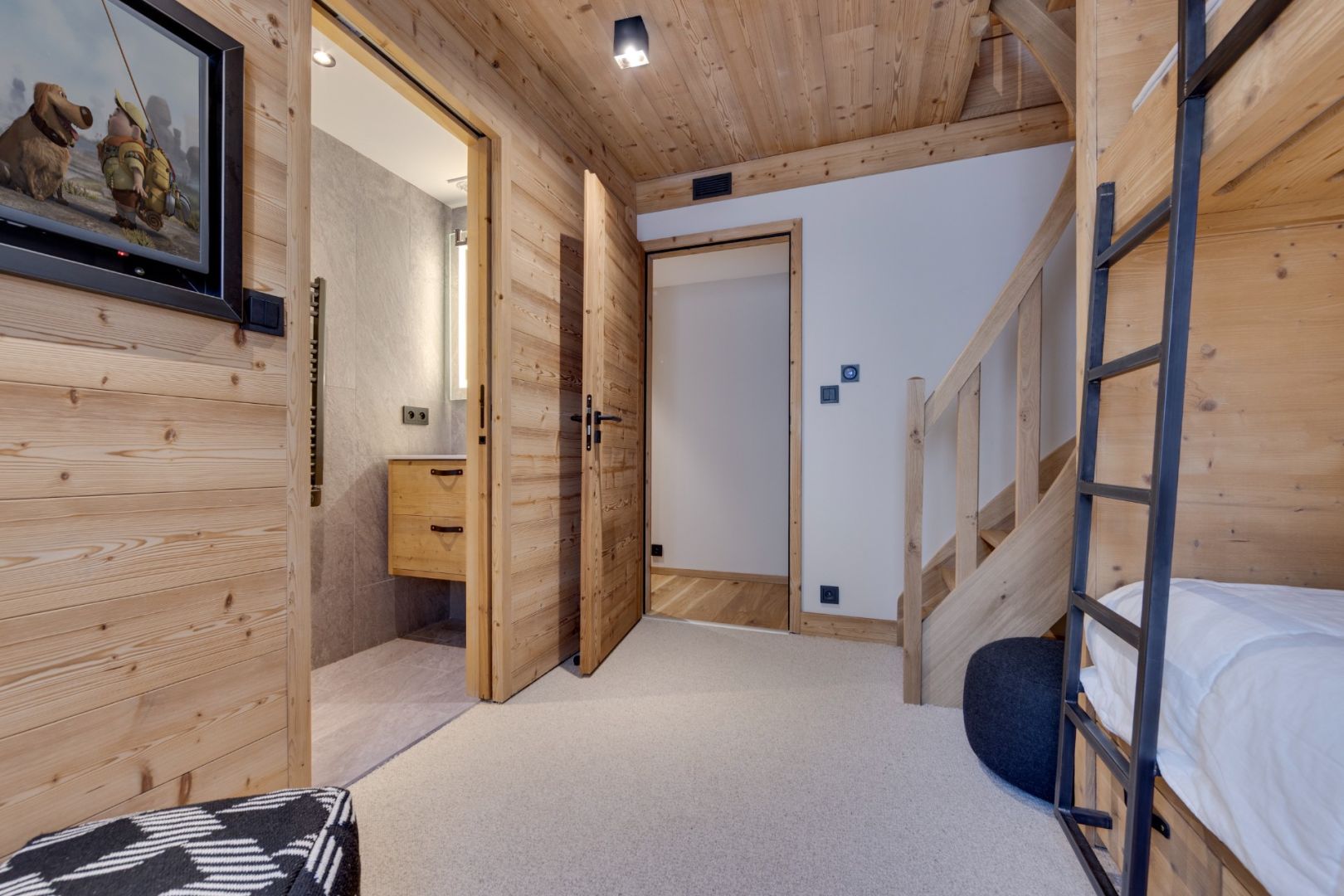 Five-room apartment ideally located at the gateway to the old village and a stone’s throw from the slopes, in a new, intimate residence. Comprising four en suite bedrooms, one of which is a duplex, this 119 sqm property enjoys a southern exposure and a magnificent view of the slopes. A beautiful living room with central fireplace and exposed beams opens onto a bright, quiet balcony. The apartment is sold furnished, with a cellar, garage and covered parking.