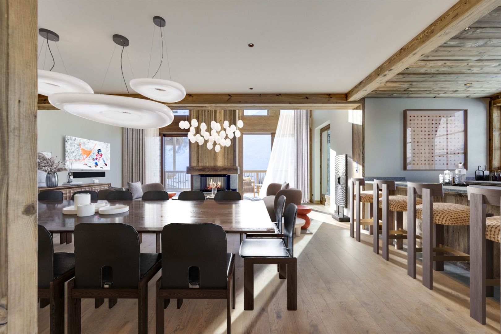 Ten minutes from the town centre and very close to the slopes, La Legettaz, sits in a spot highly sought-after by skiers and mountain lovers, offering a truly uplifting atmosphere. Here, amid wonderful natural surrounds, Le Chardon unveils its traditional architecture. These majectic chalets with sculpted balconies blend larch wood and stone in a distinctively Val d’Isère spirit. First you see sumptuous fronts in tune with traditional Savoie architecture, then savour interiors equipped with the most sophisticated fittings. The South-facing individual or collective chalets are bathed in light thanks to ample bay windows. This amazing 536,27 sqm chalet spread over 4 levels is located in the heart of an exceptional programme. Come and discover Le Chardon, a private hamlet with an exceptional view over the Manchet valley. Enjoy a luxurious and warm setting in the middle of nature.